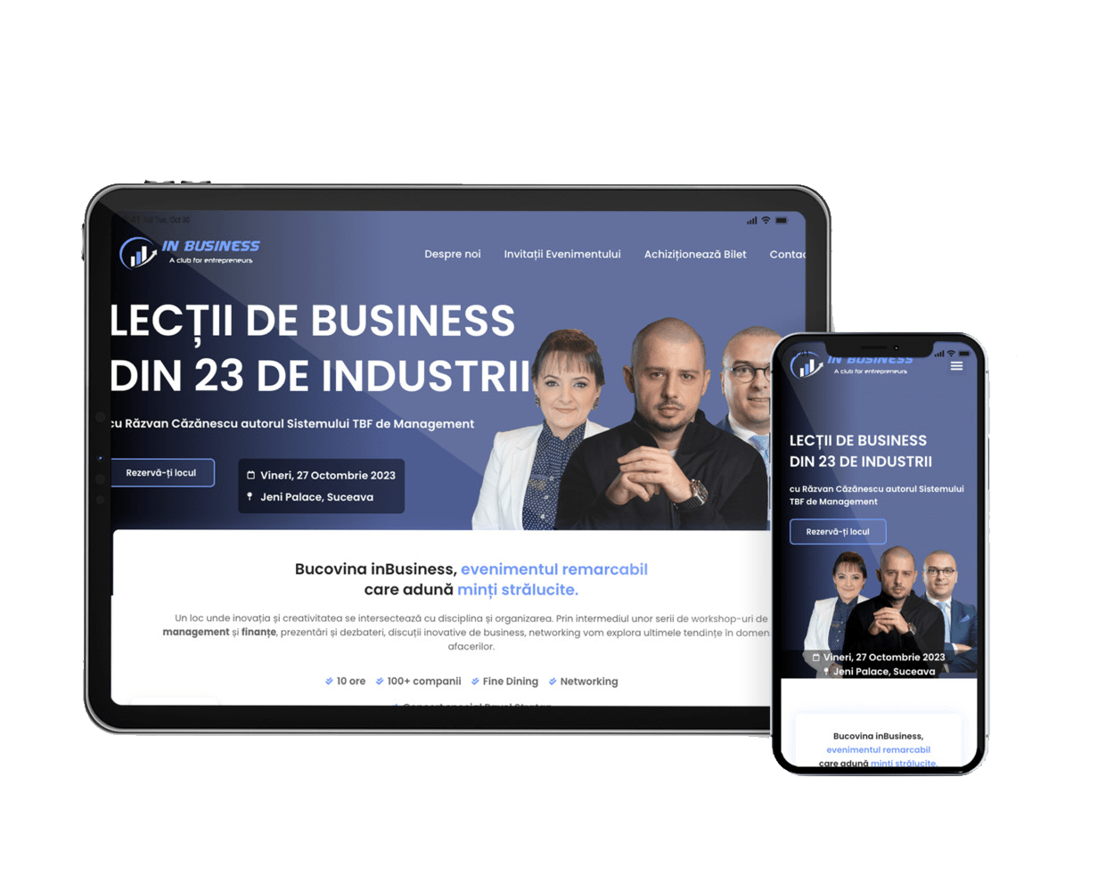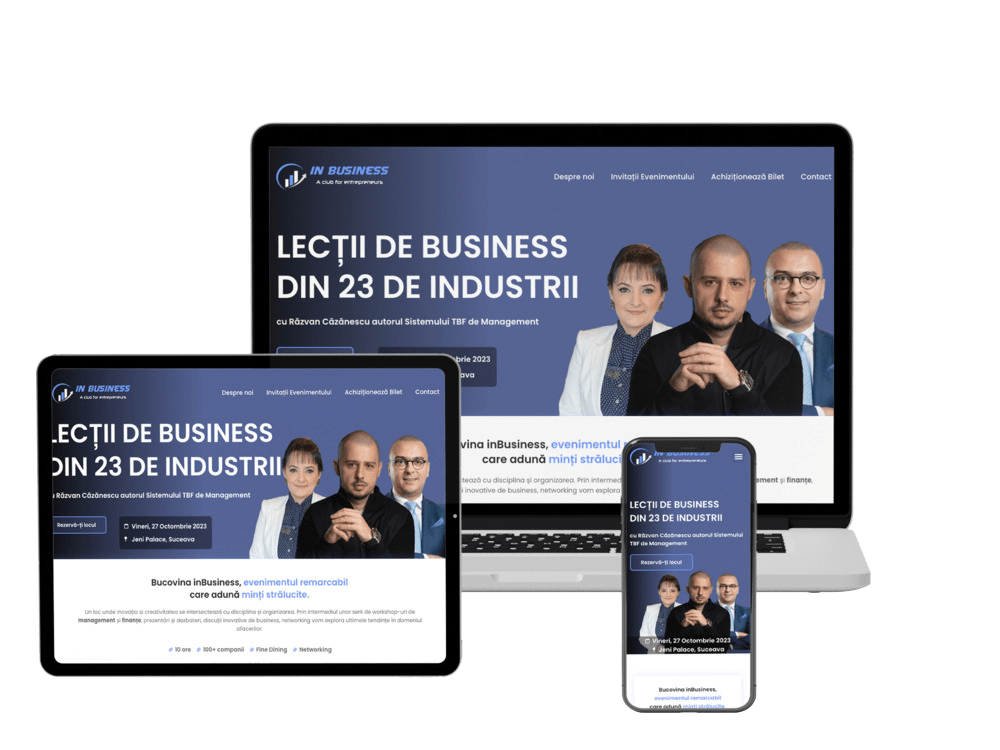 Bucovina inBusiness is a landing page that presents an event, a series of management and finance workshops, presentations and debates, innovative business and networking discussions.