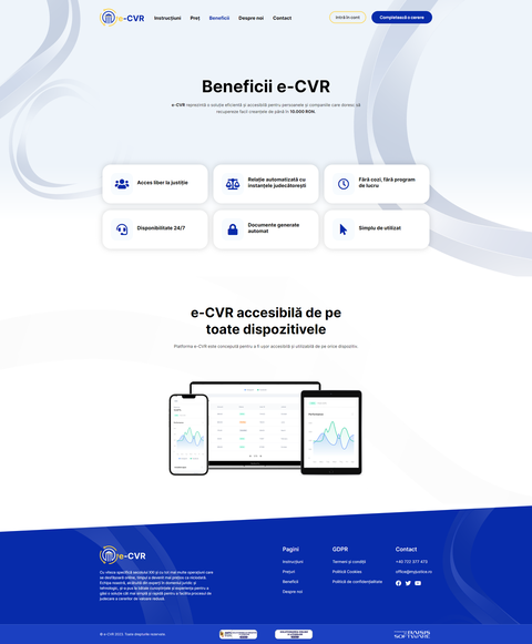 The e-CVR website is made in WordPress and presents the use of the low value claims platform that can provide benefits to people with limited financial resources.