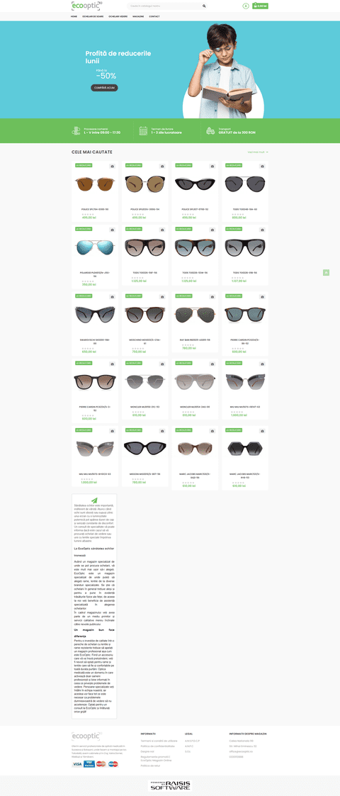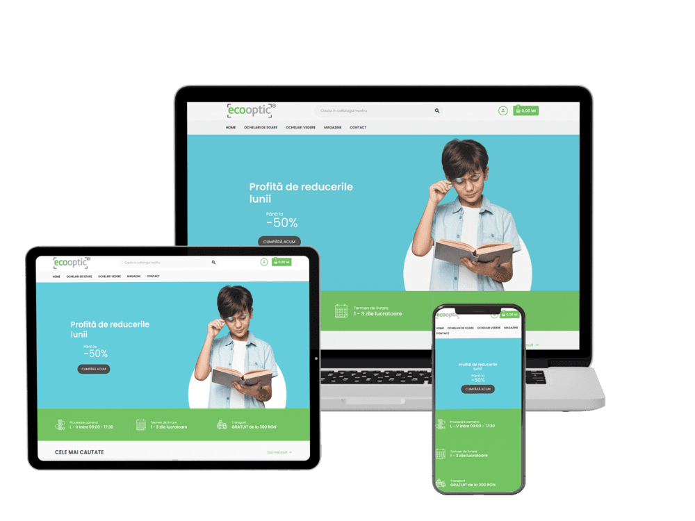 Organization and presentation of products. EcoOptic sells a wide range of eyeglasses and sunglasses, each with different sizes, colors and features. Another important challenge was to integrate the payment system and ensure the security of financial transactions. With a competitive online market, the Ecooptic.ro online store needed a strong presence in search engines to attract and maintain customers.
