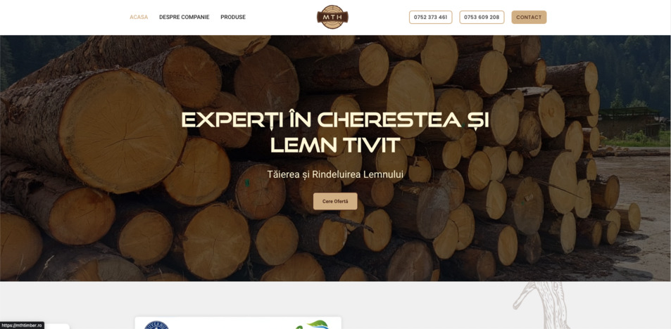 A significant aspect of the site's functionality is the simple contact form, which allows visitors to quickly request personalized offers or obtain additional information. This facilitates communication with the MTH Timber team and improves the user experience.